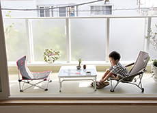 リビングとつながるインナーバルコニー。室内と外部気候のクッションの役目を果たし、直射日光や熱の浸入を和らげてくれます。机や椅子も置き、アウトドアリビングとしても楽しめます。