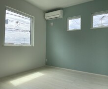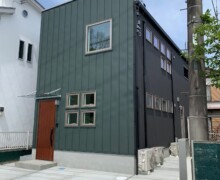 ファサードカラーのモスグリーンと内観にもグリーンをお選びいただいた。この色が好きだが実際に採用出来ない人は多いのではないだろうか。