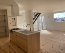 標準のオール電化を御希望によりガスコンロや乾太くん、エコワンへ変更し水回りも標準品のキッチンからウッドワンの商品へ変更されている。