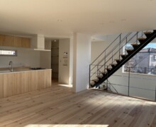 外皮性能や気密性能を上げるため窓は出来るだけ小さく、少なく計画させていただいたが、広く一体となる2階LDKでは最低限の窓としても予想以上に明るくフルフラットも合わさり開放的な空間となった。