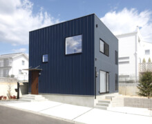 ファサードは玄関ドアも含めブラックなデザイン。